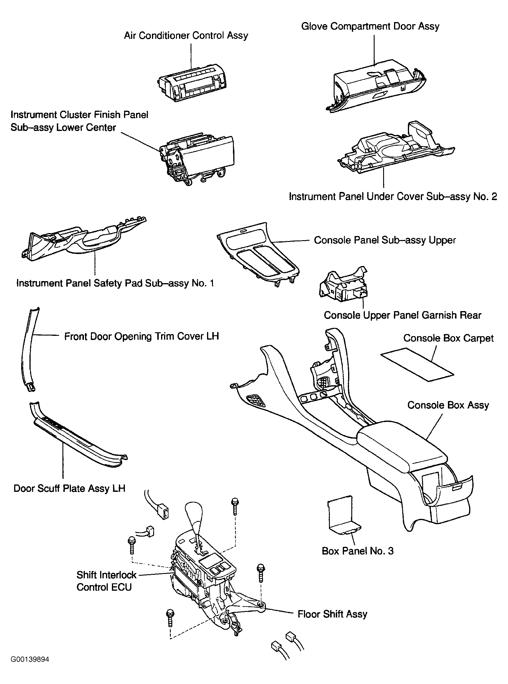 Fig 1: Exploded View Of Floor Console & Related Components (Lexus SC430)