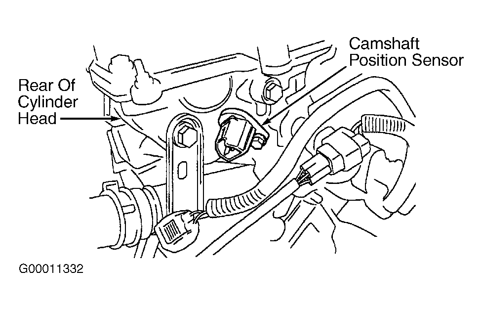 - Disconnect electrical connector at camshaft position sensor. Camshaft position sensors are located at flywheel end of each cylinder head, just below valve cover. See Fig 1.