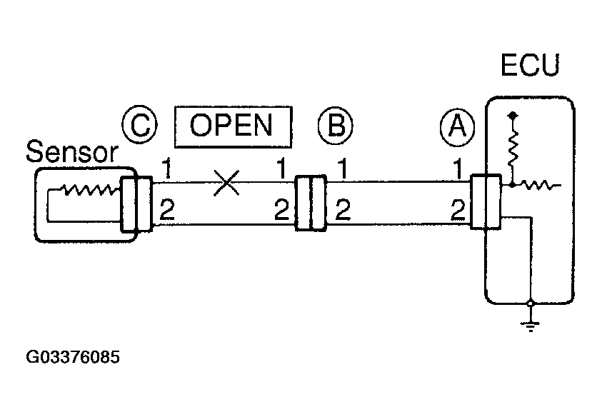 Therefore, it is found out that there is an open circuit between terminal 1 of connector "A" and terminal 1 of connector "C".