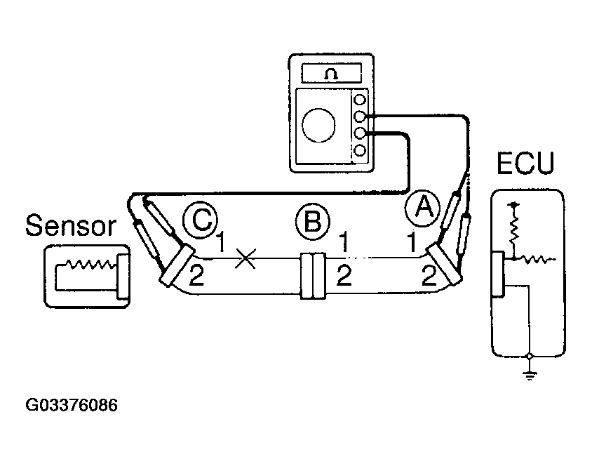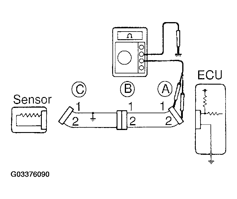 1. Disconnect connectors "A" and "C" and measure the resistance between them.
