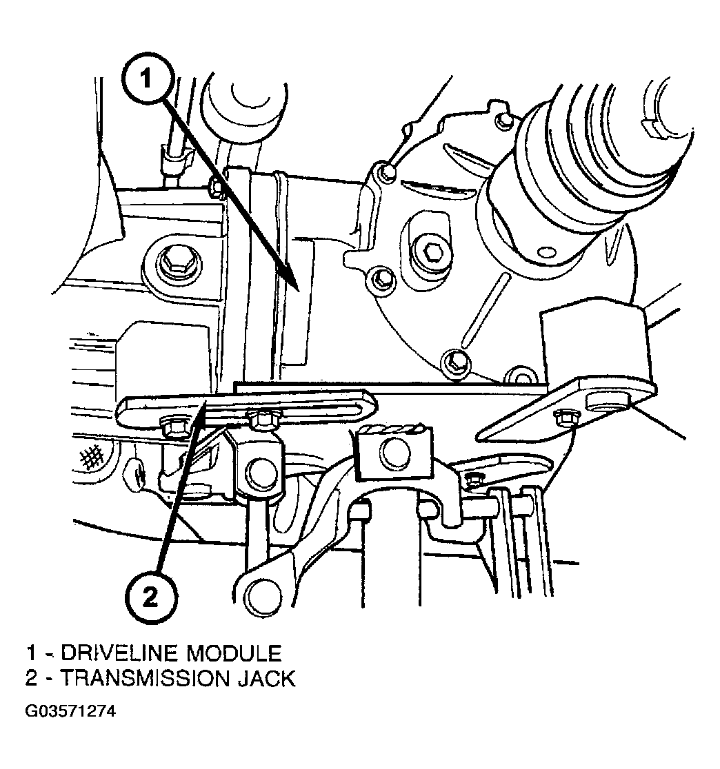 9. Support driveline module with transmission jack (or equivalent). (Fig 1 )