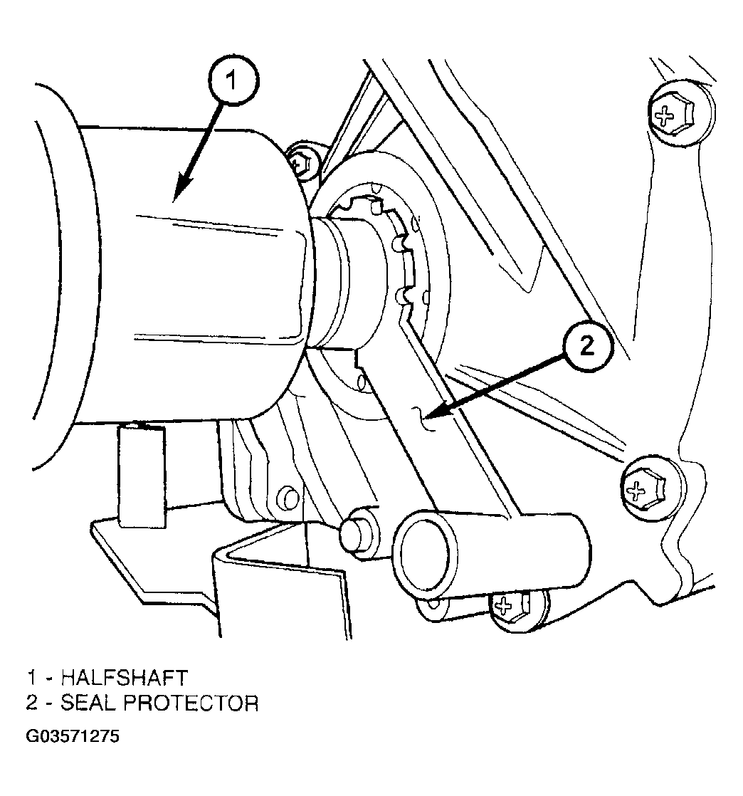 10. Using suitable screwdriver, partially dislodge halfshafts from differential. Install Tool 9099 to protect seal upon disassembly (Fig 2 ).