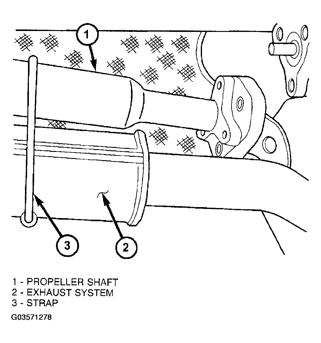 4. Remove exhaust system center hanger (at propeller shaft bearing/support).
