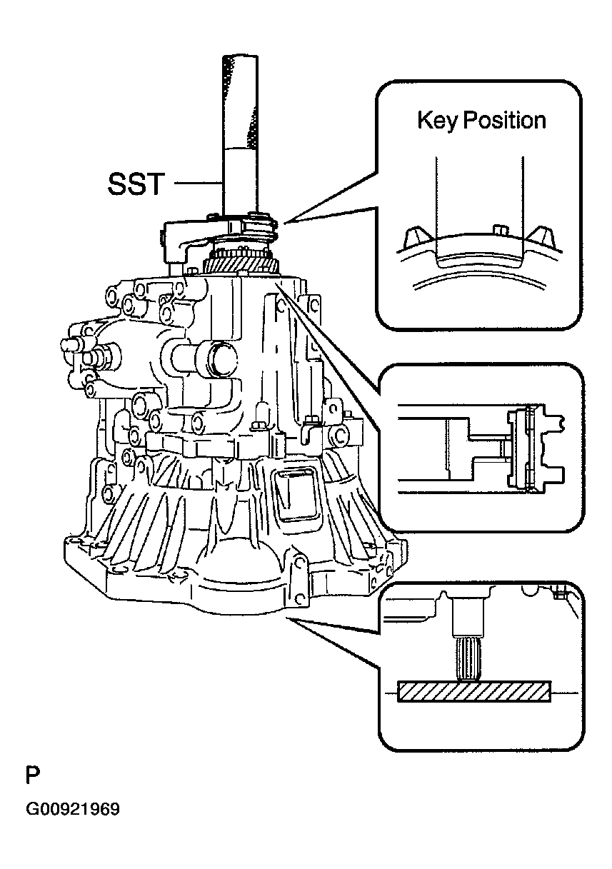 - Using SST, install output shaft rear bearing to the output shaft.