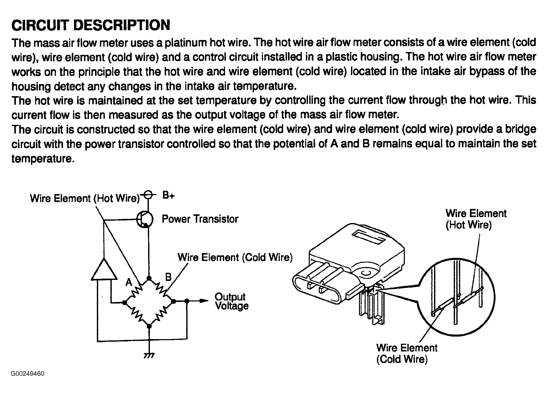 Home >> Toyota >> 2004 >> Matrix Base, FWD, Standard >> Repair and Diagnosis >> External Pages >> Different car >> Section 129 (Engine Control System Self Diagnostics) >> Diagnostic Tests >> DTC P0101: Mass Airflow Meter Circuit Range/Performance >> Circuit Description