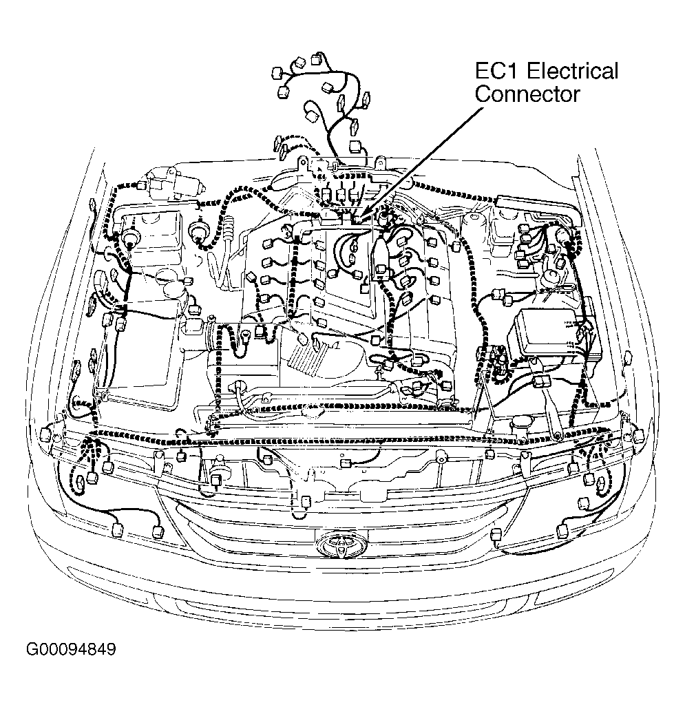 1. Connect Toyota hand-held tester or scan tool to Data Link Connector (DLC) No. 3 at driver's side of instrument panel. See Figure. Disconnect EC1 electrical connector. See Figure. EC1 electrical connector is an in-line Black electrical connector located near rear of intake manifold.