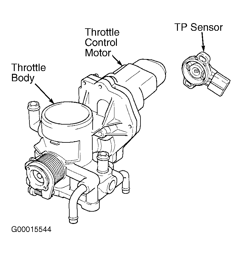 3. Check for open and short in wiring harness and electrical connectors between throttle control motor and ECM. See WIRING DIAGRAMS article. Throttle control motor is located on side of throttle body. See Fig 2. If wiring harness and electrical connectors are okay, replace ECM. If wiring harness or electrical connector is defective, repair as necessary.