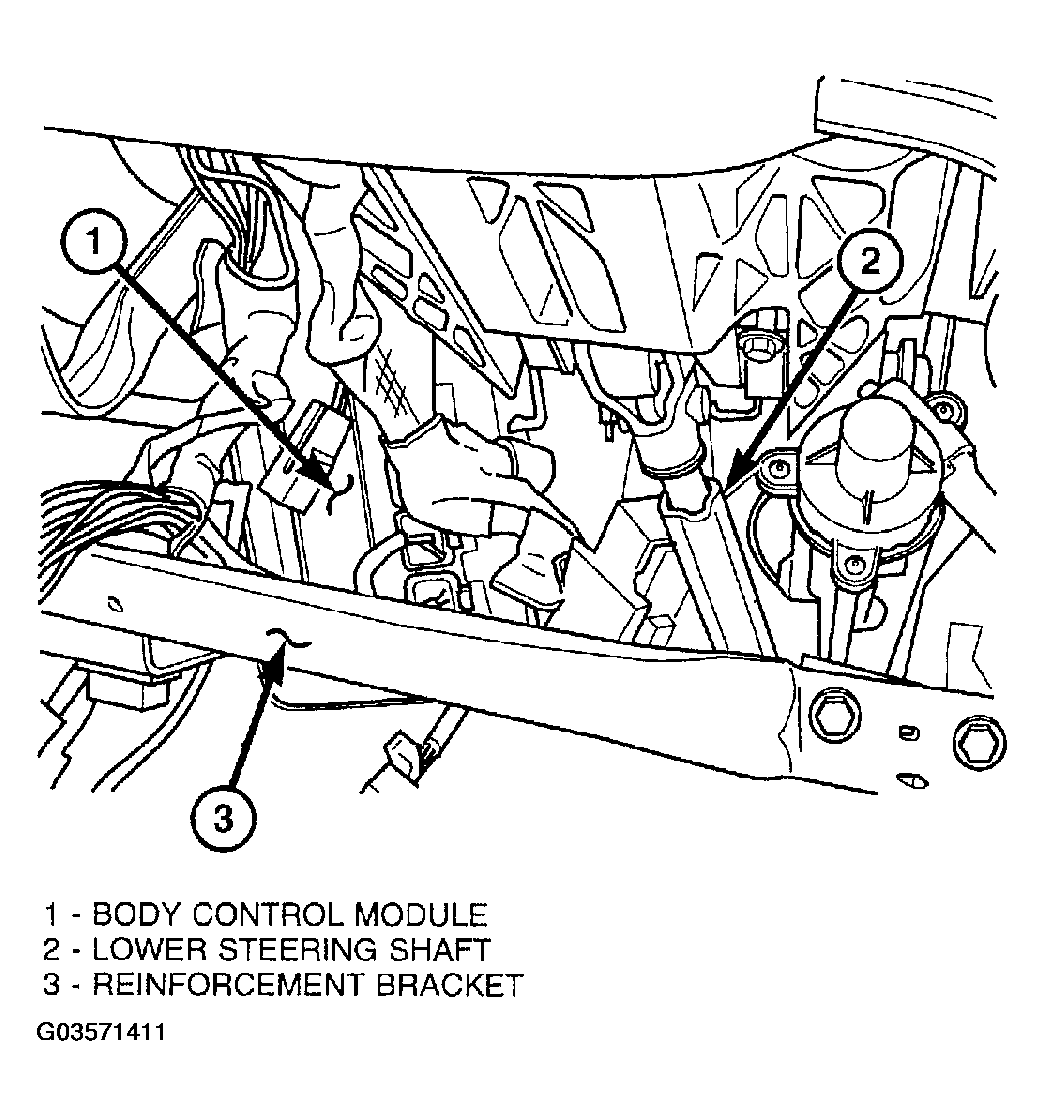 The Body Control Module (BCM) is located on the bulkhead left side, underneath the instrument panel (Fig 1). The BCM utilizes integrated circuitry and information carried on the Programmable Communications Interface (PCI) data bus network along with many hard wired inputs to monitor many sensor and switch inputs throughout the vehicle. In response to those inputs, the internal circuitry and programming of the BCM allow it to control and integrate many electronic functions and features of the vehicle through both hard wired outputs and the transmission of electronic message outputs to other electronic modules in the vehicle over the PCI data bus.