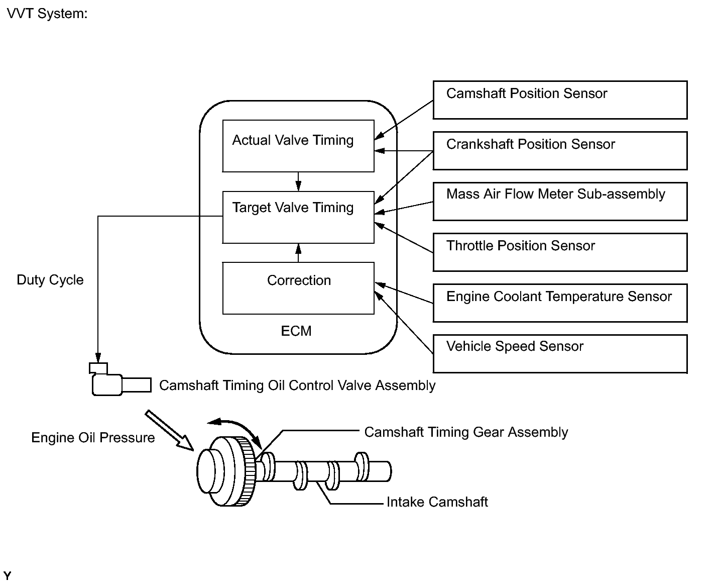 - The intake air temperature sensor, mounted in the mass air flow meter sub-assembly, monitors the intake air temperature. The intake air temperature sensor has a built-in thermistor with a resistance that varies according to the temperature of the intake air. When the intake air temperature becomes low, the resistance of the thermistor increases. When the temperature becomes high, the resistance drops. These variations in resistance are transmitted to the ECM as voltage changes (see Figure).