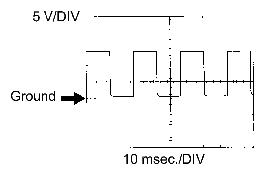 Symbols (Terminal No.) Wiring Color Terminal Description Condition Specified Condition ACCD (D44-11) - GND2 (D44-6) R - W-B ACC signal Engine switch OFF → Engine switch ON (ACC) Below 1 V → 10 to 14 V IG1D (D44-34) - GND2 (D44-6) LG - W-B IG1 signal Engine switch ON(ACC) → Engine switch ON (IG) Below 1 V → 10 to 14 V IG2D (D44-35) - GND2 (D44-6) Y - W-B IG2 signal Engine switch ON(ACC) → Engine switch ON (IG) Below 1 V → 10 to 14 V STP (D44-1) - GND2 (D44-6) LG - W-B Stop light signal Brake pedal depressed → Released 10 to 14 V → Below 1 V SLR+ (D44-32) - GND2 (D44-6) P - W-B Power source for steering lock actuator Steering lock motor operate → not operate Below 1 V → 10 to 14 V SLP (D44-26) - GND2 (D44-6) BE - W-B Steering lock actuator UNLOCK position signal Steering is locked → released 10 to 14 V → Below 1 V SPD (D44-19) - GND2 (D44-6) W - W-B Vehicle speed signal Engine switch ON (IG), Rotate driving wheel slowly Pulse generation TACH (D44-2) - Body ground L - Body ground Engine revolution speed signal Idling Pulse generation (see waveform 1 found in Fig 2) P (D44-5) - Body ground P - Body ground Shift lock signal Shift lever P position → D position Below 1 V → 10 to 14 V CTSW (D44-31) - Body ground BE - Body ground Starter assist signal Brake pedal depressed, Engine switch ON (START) (*1) Below 1 V STSW (D44-39) - Body ground R - Body ground Starter activation request signal Brake pedal depressed, Engine switch ON (START) (*2) 10 to 14 V STR1 (D44-17) - GND2 (D44-6) B - W-B Park / neutral position switch Shift lever P or N position, Engine switch ON (START) 10 to 14 V STR2 (D44-15) - GND2 (D44-6) SB - W-B Starter signal Shift lever P or N position, Engine switch ON (START) 10 to 14 V INDS (D44-4) - Body ground Y - Body ground Vehicle condition signal Brake pedal depressed, Shift lever P or N position, Engine switch ON (ACC, IG, START) 10 to 14 V INDW (D44-13) - Body ground GR - Body ground Warning signal Smart key system malfunction Pulse generation SWIL (D44-36) - Body ground G - Body ground Illumination signal Light control switch TAIL or HEAD 10 to 14 V *1: Voltage is output only when the engine is cranking.