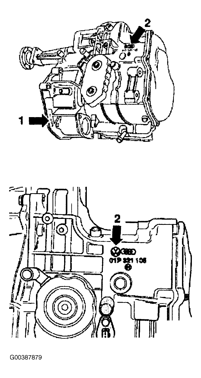 Transmission code letters are given on type plate (arrow). See Fig 1 . Transmission code letters are also given on vehicle data plate.