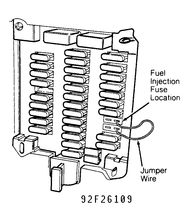 2. On 240, 740 and 940, connect a jumper wire between relay terminals No. 30 and 87/2. See Fig 3 . On 960, remove fuses No. 30 and 31. See Fig 4 . Connect a jumper wire between right fuse terminals. See Fig 4 . On all models, fuel pumps should start. Fuel filler cover can be removed to determine whether main pump is operating.