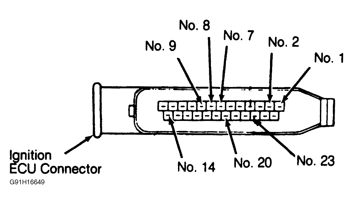 Turn ignition switch to OFF position. Connect ohmmeter between ignition control unit terminals No. 20 and 14, and ground. See Fig 1 . Resistance should be zero ohms.
