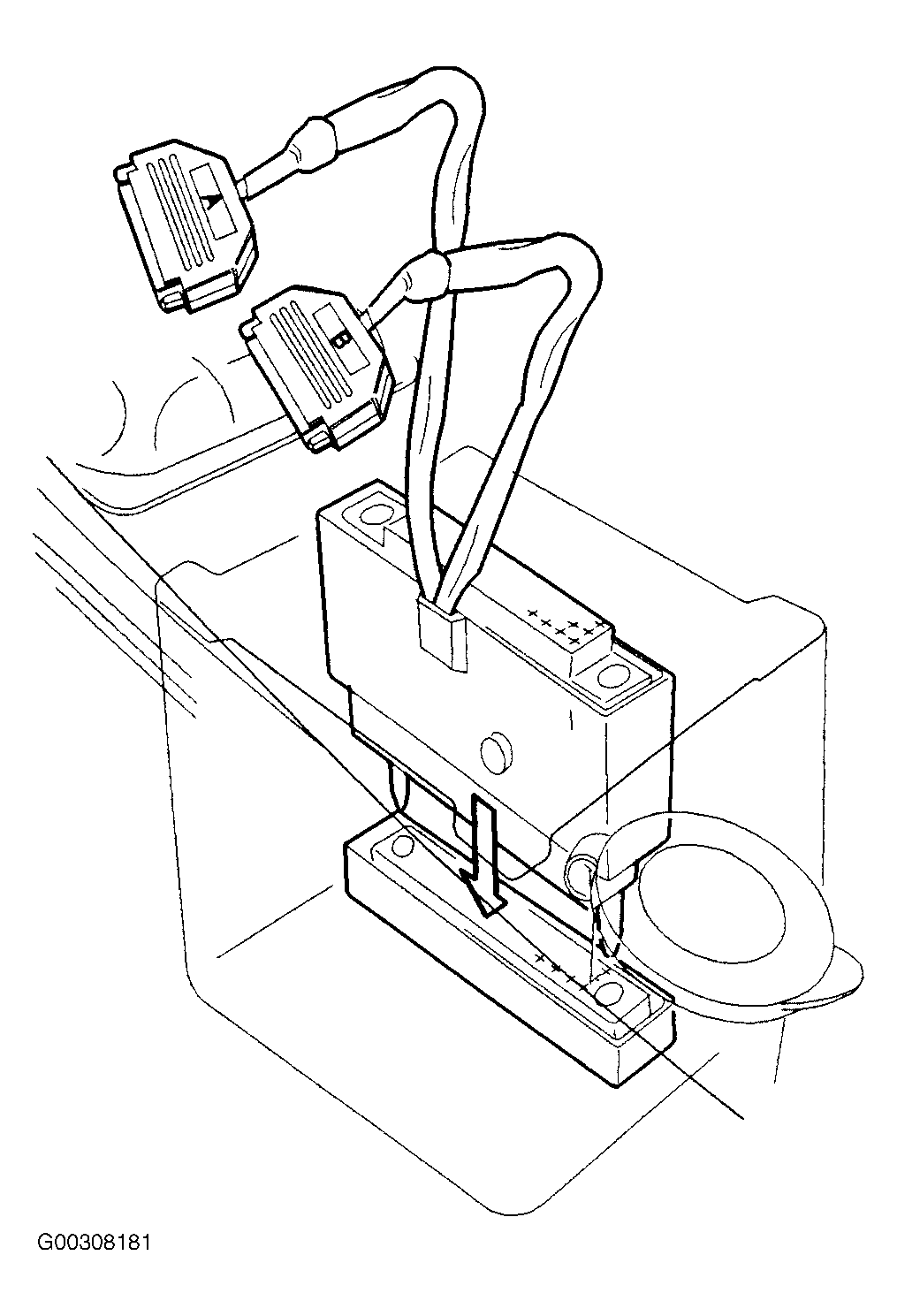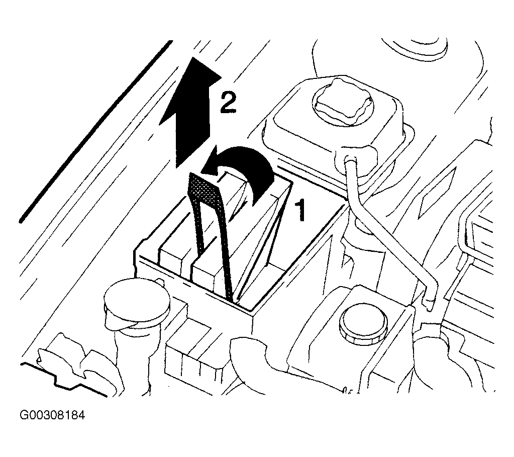 - Wait three minutes before continuing. Locate ECM in control module box at right front of engine compartment. See Fig 1. Being careful not to damage ECM pins and connectors, lift up on release lever and pull ECM up and out.