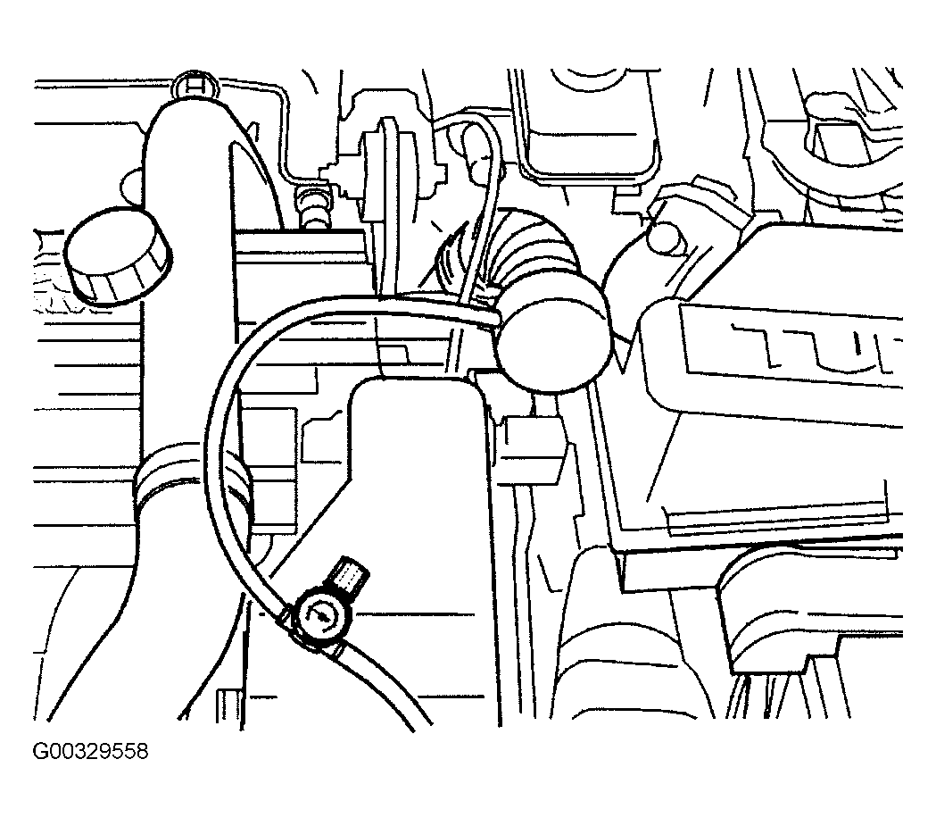 3. Clamp crankcase ventilation hose with hose clamp. Remove oil filler cap. Remove lower hose from canister purge valve.