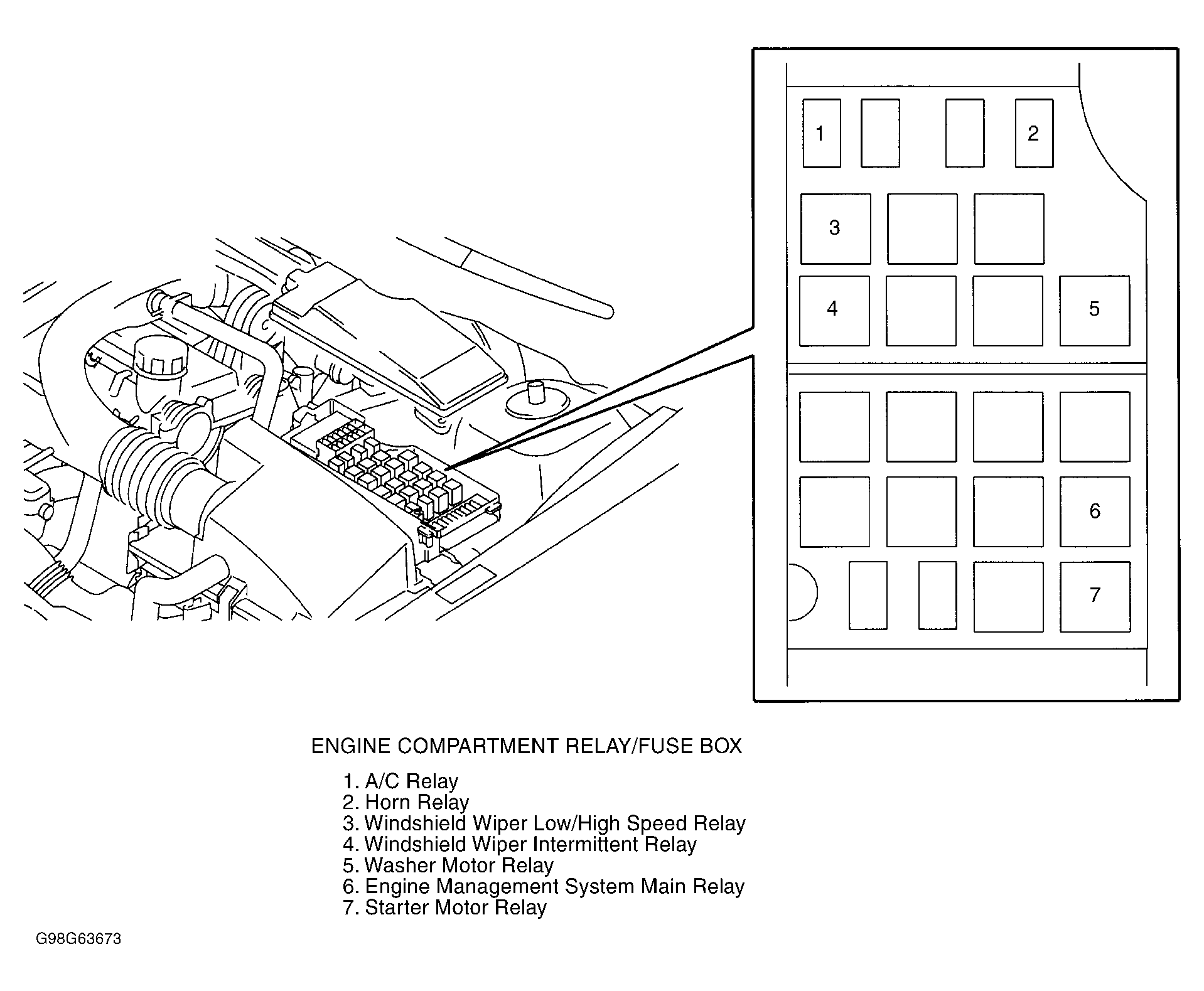 | Engine Compartment Relay/Fuse Box | At left side of engine compartment, forward of strut tower. See Figure . |