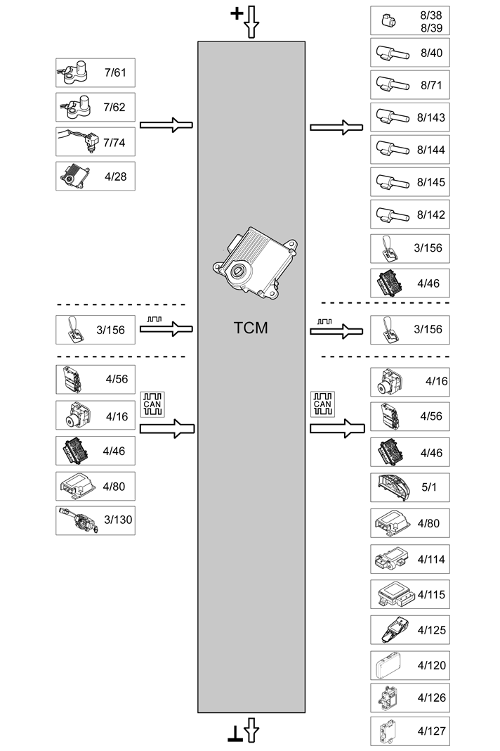 - The transmission control module (TCM) transmits a signal via the CAN network to the engine control module (ECM) to light the malfunction indicator lamp (MIL) in the Driver Information Module (DIM) in the event of an emission related fault.